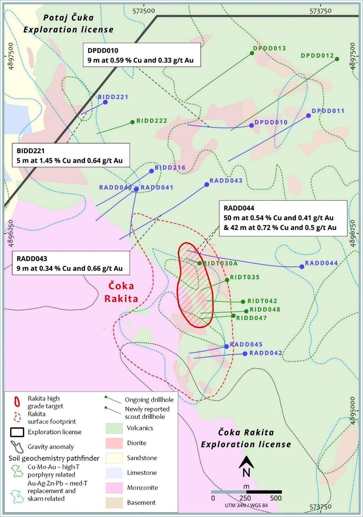 - Upside exploration potential: DPM is continuing its drilling program focused on extending the limits of Čoka Rakita, which remains open to the northeast and to southwest, and is also aggressively pursuing additional skarn targets on the Čoka Rakita licence as well as on three additional licences to the north and the south.